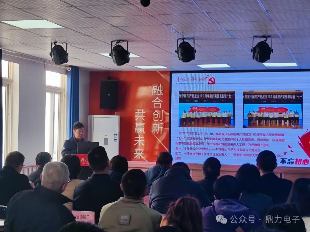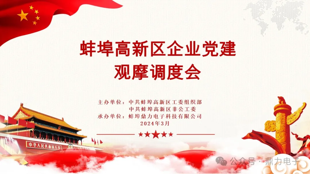 2024年3月28日下午三點,在蚌埠鼎力電子科技有限公司會議室召開蚌埠高新區(qū)企業(yè)黨建觀摩調(diào)度會,會議由張躍江書記主持,會議議程總共分為六個部分:鼎力電子黨支部匯報黨建工作開展情況;全區(qū)黨建工作示范點命名文件并授牌;區(qū)非公辦解讀黨建共建“七個一”工作要求;黨建指導(dǎo)組組長匯報工作開展情況;13個企業(yè)黨建工作示范點交流發(fā)言;會議總結(jié)點評。