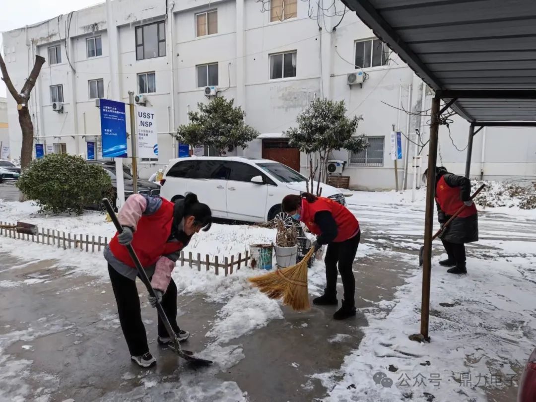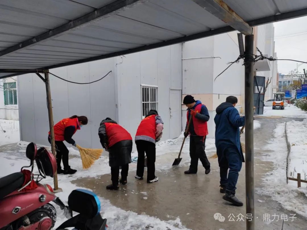 2024年的第一場大雪如約而至,銀裝素裹的美景給大家?guī)硇老驳耐瑫r(shí),為及時(shí)清除積雪,確保員工上下班出行方便,中共蚌埠鼎力電子科技有限公司支部開展掃雪除冰志愿者活動。